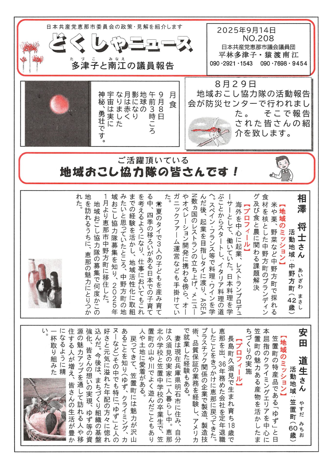 どくしゃニュース 多津子と南江の議員報告 9月14日号 2025年09月12日 10時17分02秒 by 日本共産党 恵那地区委員会 今週の「どくしゃニュース多津子と南江の議員報告」です。 恵那市の地域おこし協力隊の皆さんの活動報告会の紹介です。 前の記事 民報なかつがわ 9月14日号 9月14日付「民報なかつがわ」を発行しました。 市民の皆さんの願いである「医療体制の充実」をどう実現するのか、継続審議となっていた「中津川市の医療体制... 次の記事 軍事費過去最大・「軍事ローン」16兆円超にNO/東海ブロック宣伝 【ご報告】街頭宣伝を行いました 日本共産党中津川市委員会は、16日・17日早朝、中津川市内各地で街頭宣伝を行いました。 防衛省が示した2026年度の概算要... コメントを残す コメントをキャンセルメールアドレスが公開されることはありません。 ※ が付いている欄は必須項目です コメント 名前 * メール * サイト Δ