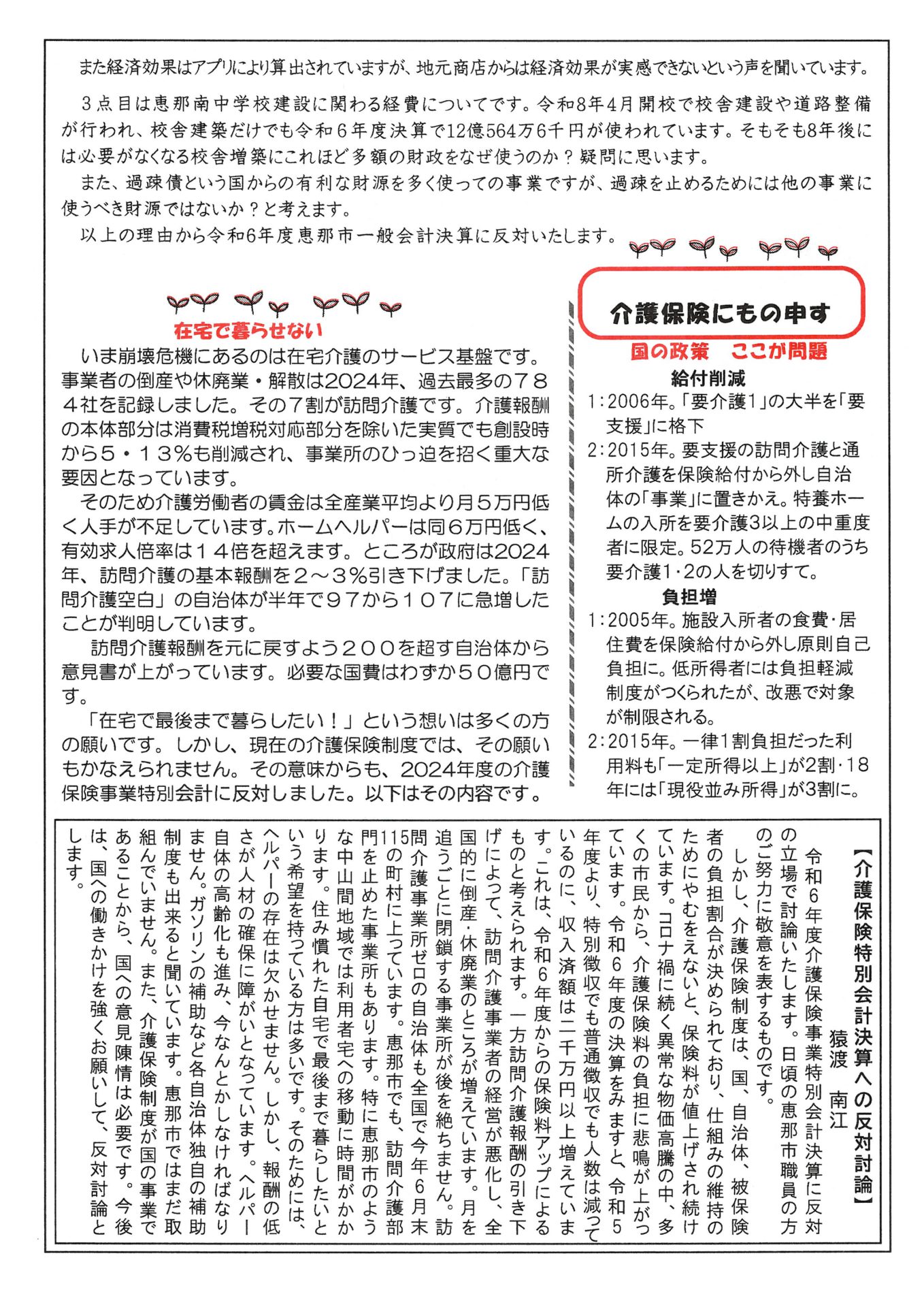 🔹介護保険制度の問題点と改善を求める声
