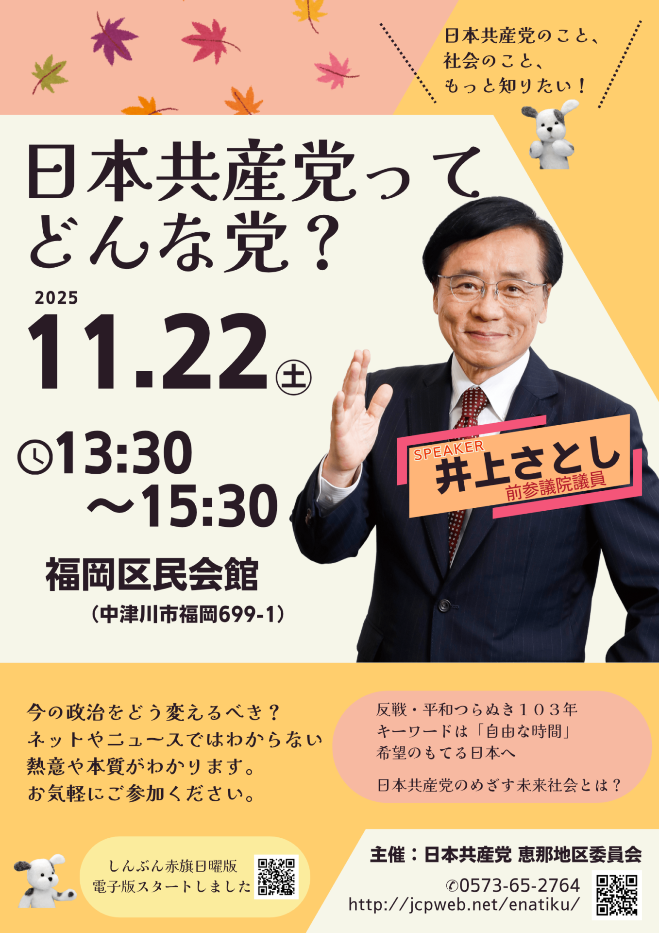 《お知らせ》11月22日(土)13:30~中津川市で、