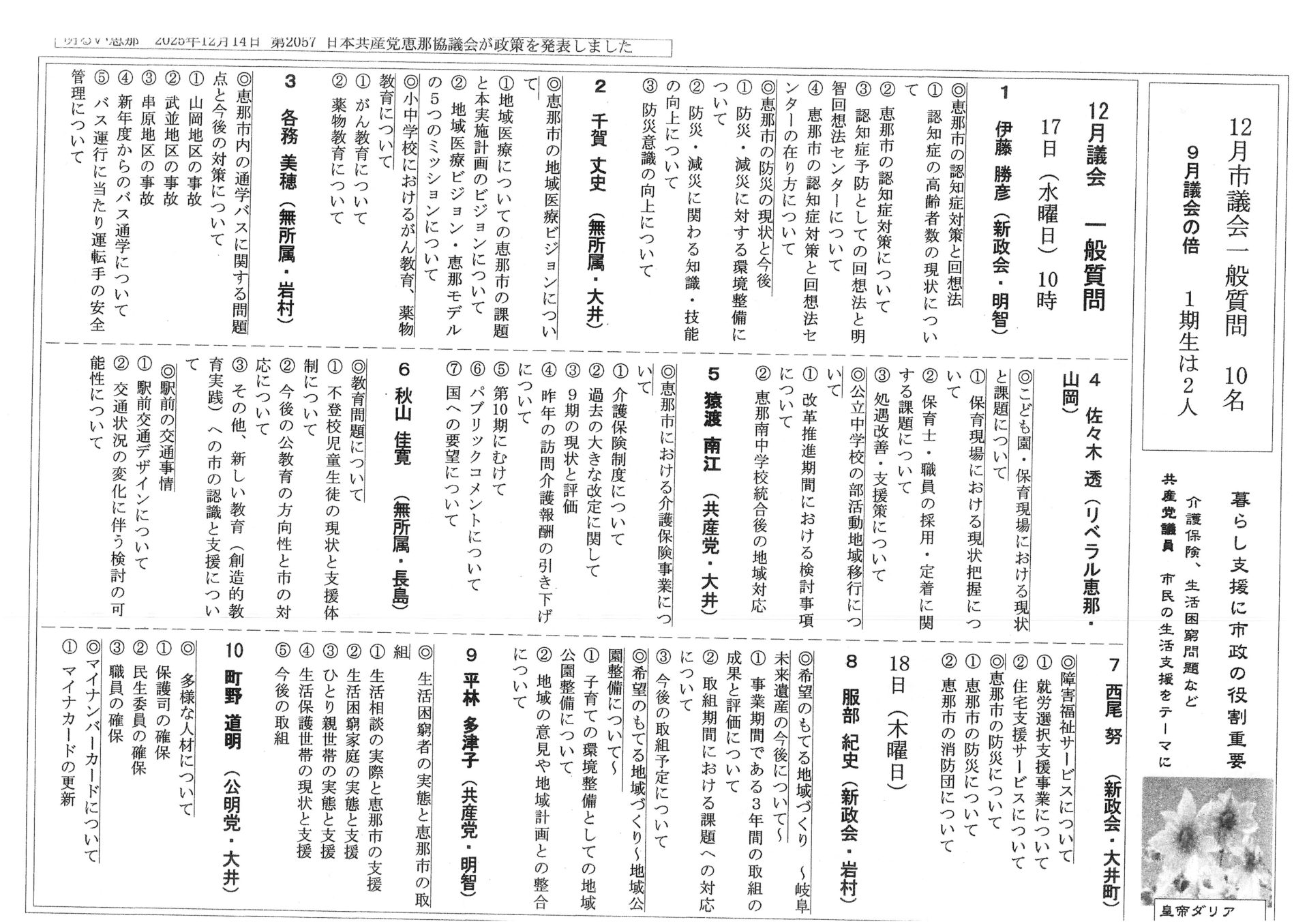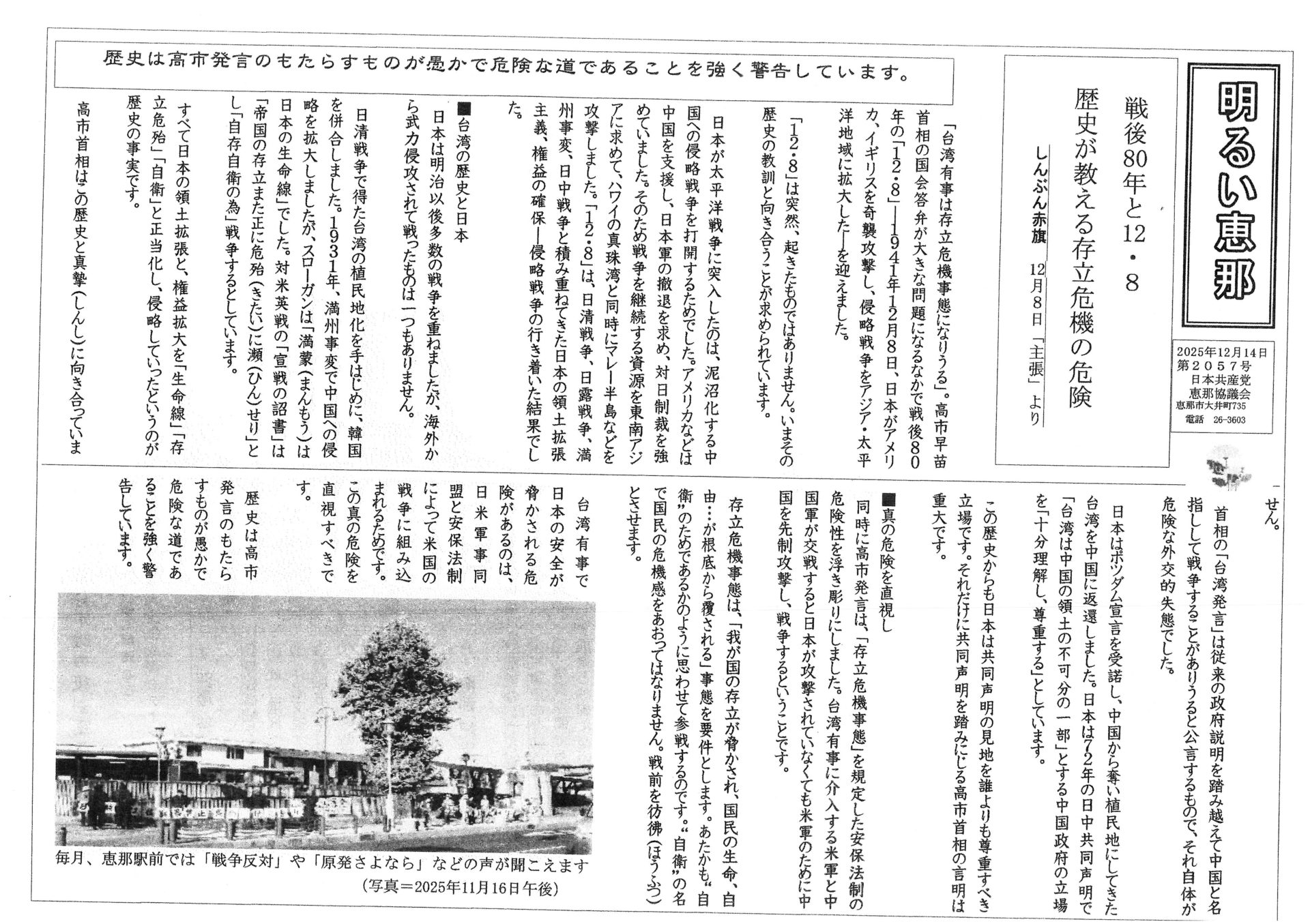 明るい恵那 12月14日号 戦後80年と12.8/恵那市12月議会一般質問紹介 2025年12月14日 13時02分58秒 by 日本共産党 恵那地区委員会 今週の「明るい恵那」です。 前の記事 どくしゃニュース 多津子と南江の議員報告 12月14日号 今週の「どくしゃニュース多津子と南江の議員報告」です。 12月議会の委員会の様子です。 次の記事 次の記事はありません コメントを残す コメントをキャンセルメールアドレスが公開されることはありません。 ※ が付いている欄は必須項目です コメント 名前 * メール * サイト Δ