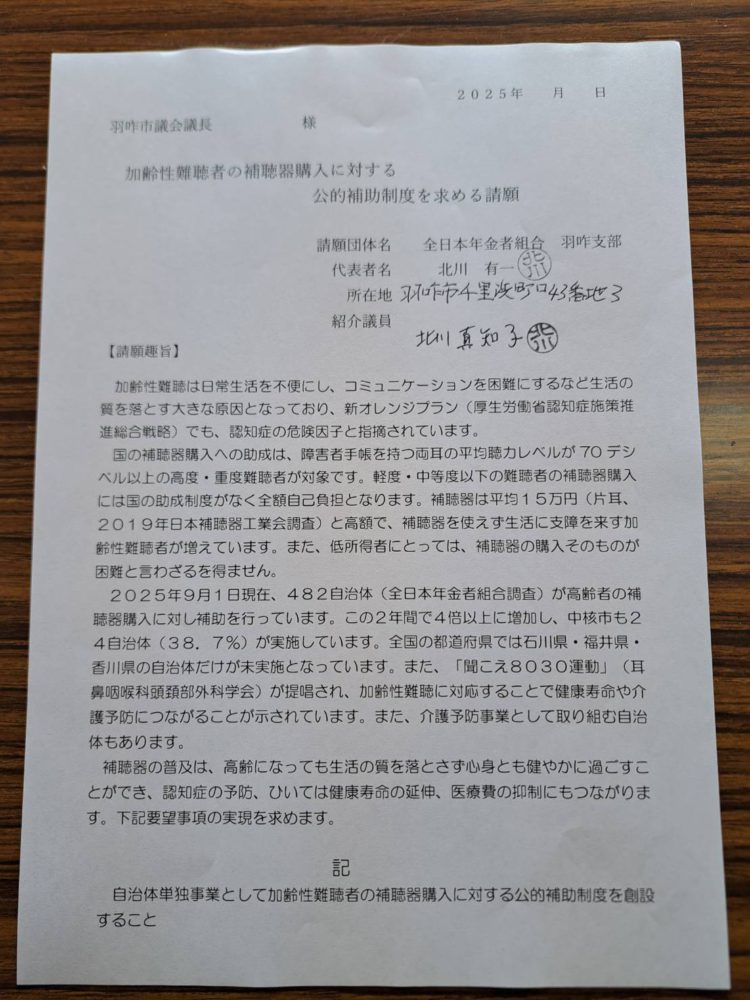 請願第3号 「加齢性難聴者の補聴器購入に対する助成を求める請願」は、総務民生常任委員会において、継続審査とのことです。委員会では、助成に対して賛成とのご意見とともに、制度創設に向けて検討していこうという積極的なご意見の上での継続審査であったと思います。引き続きご市民のみなさん、行政の皆さん、議会の皆さんに補聴器助成の必要性についてご理解いただけるようつとめてまいります。
