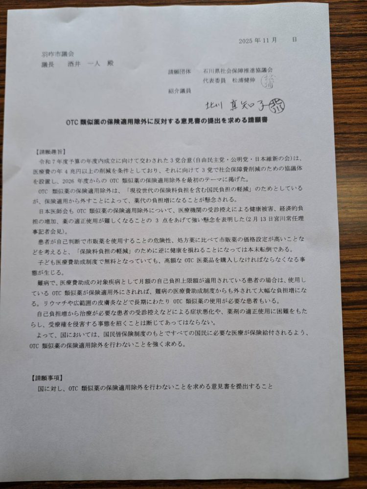 請願第2号 「OTC類似薬の保険適用除外に反対する意見書提出の請願」は、総務民生常任委員会で継続審査とのことです。