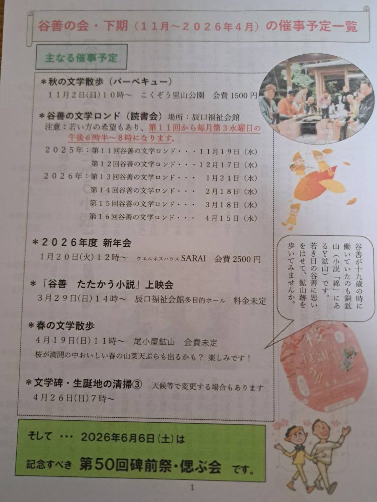 顕彰する会では、各種企画への参加や小説集のご購入、会への入会も随時大歓迎ですので、興味を持たれた方はぜひ事務局や佐伯までご連絡ください。