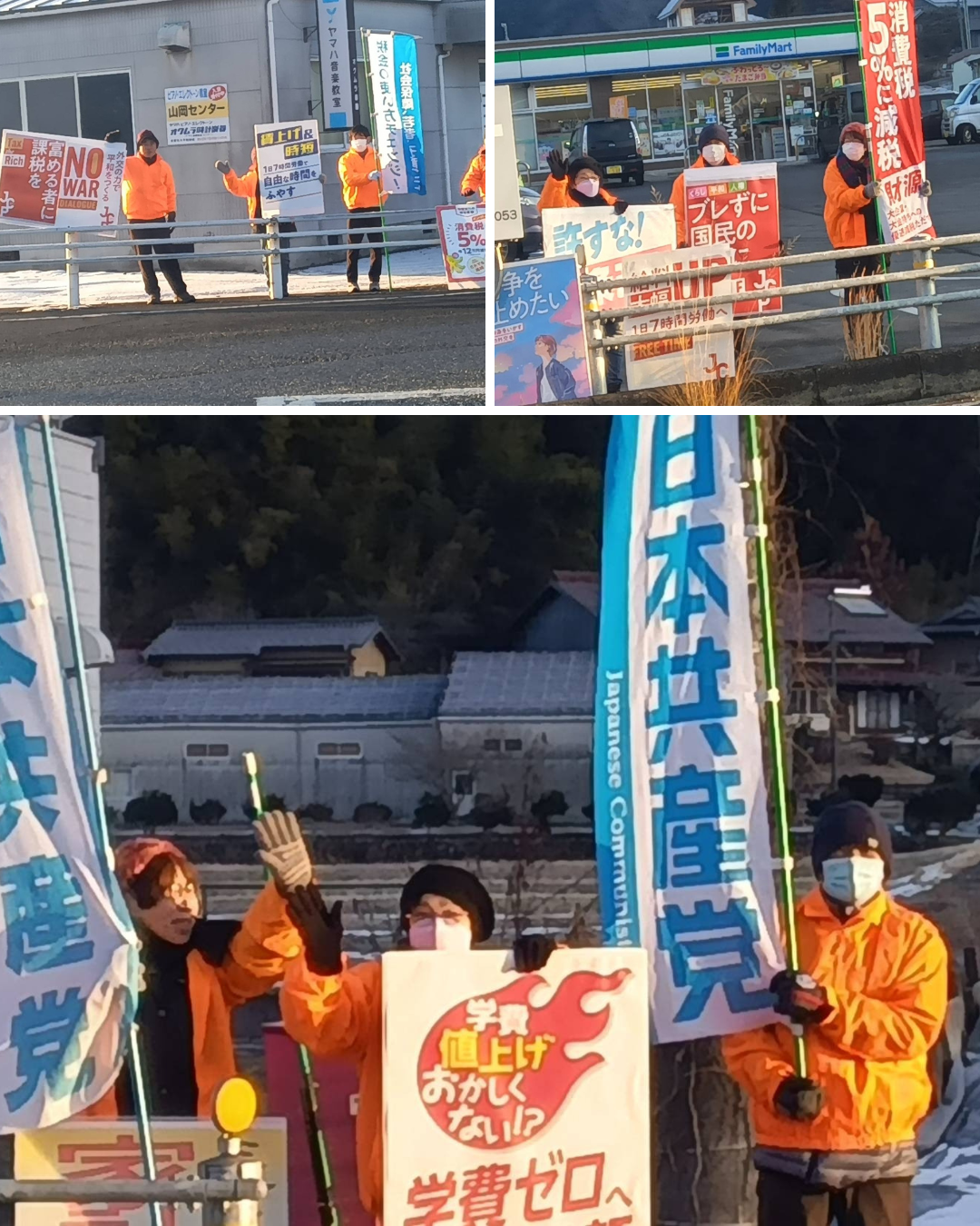 大企業・大株主優遇や大軍拡をやめ、消費税5%減税、最低賃金引き上げ、年金・社会保障・教育を充実させ、くらしに安心と豊かさを。