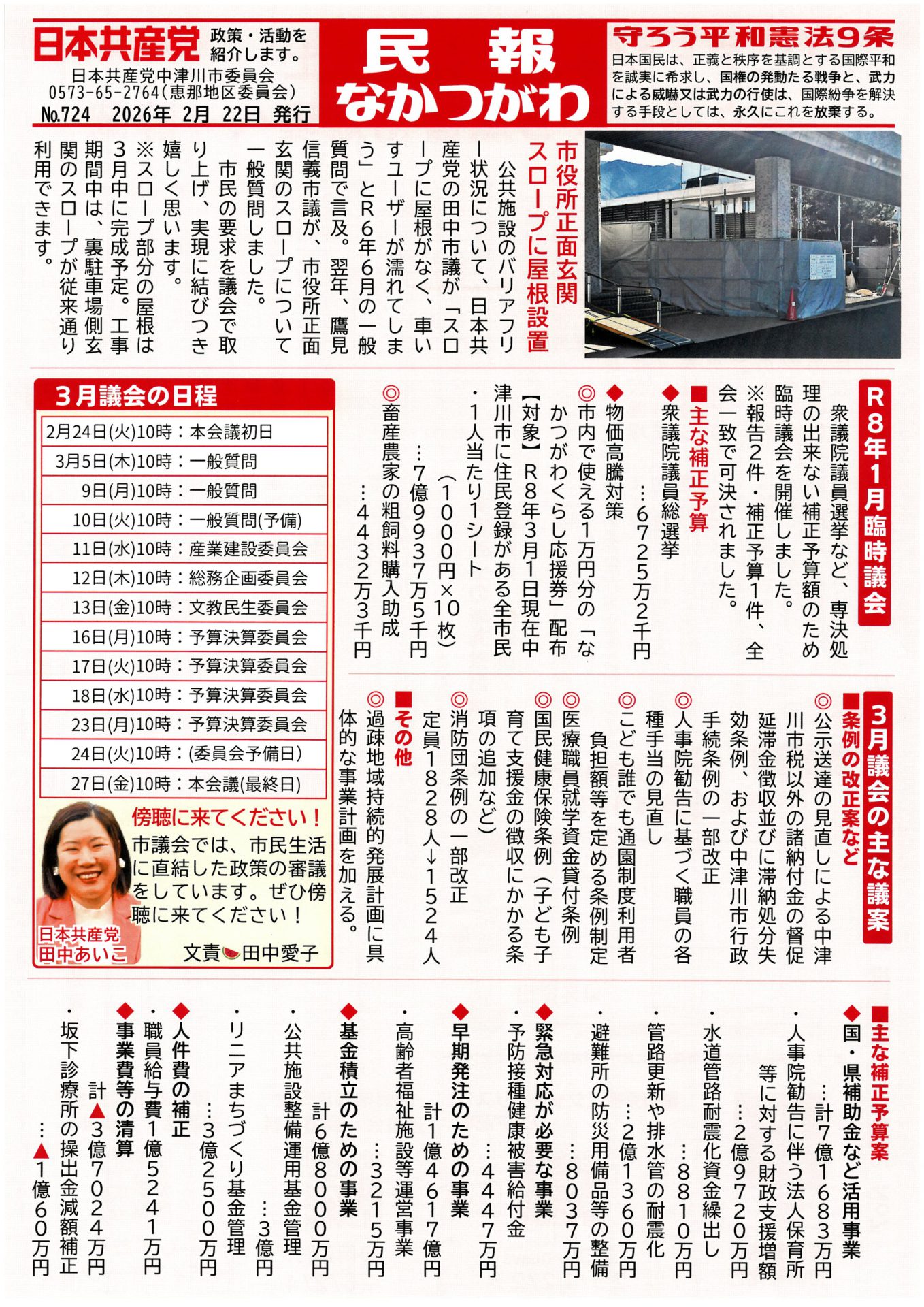 今号では、3月議会の主な議案や補正予算の内容をお知らせしています。