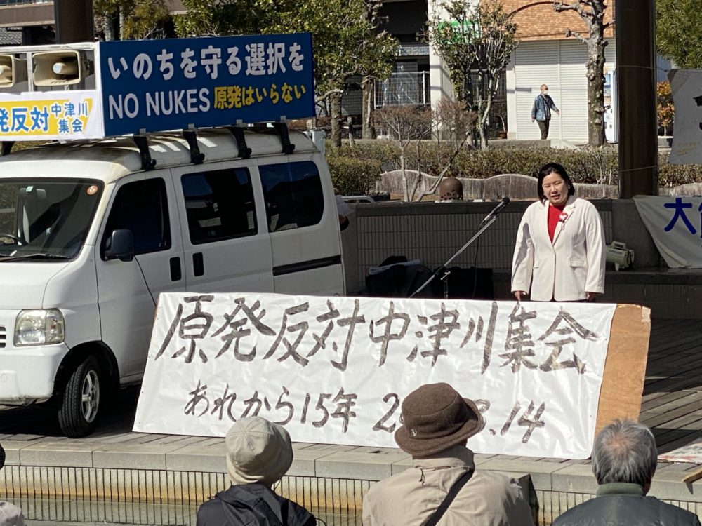 このほか、木下律子 中津川市議から寄せられたメッセージも紹介されました。福島県浪江町などの被災地を訪れた経験を報告し、「事故から15年が経っても多くの地域が帰還困難区域のままで、故郷に戻れない人々がいる現実を忘れてはならない」と強調。「原発事故の反省もないまま再稼働を進める政府の姿勢は認められない。原発は人間が制御できないエネルギーであり、再稼働を許してはならない」と訴えました。