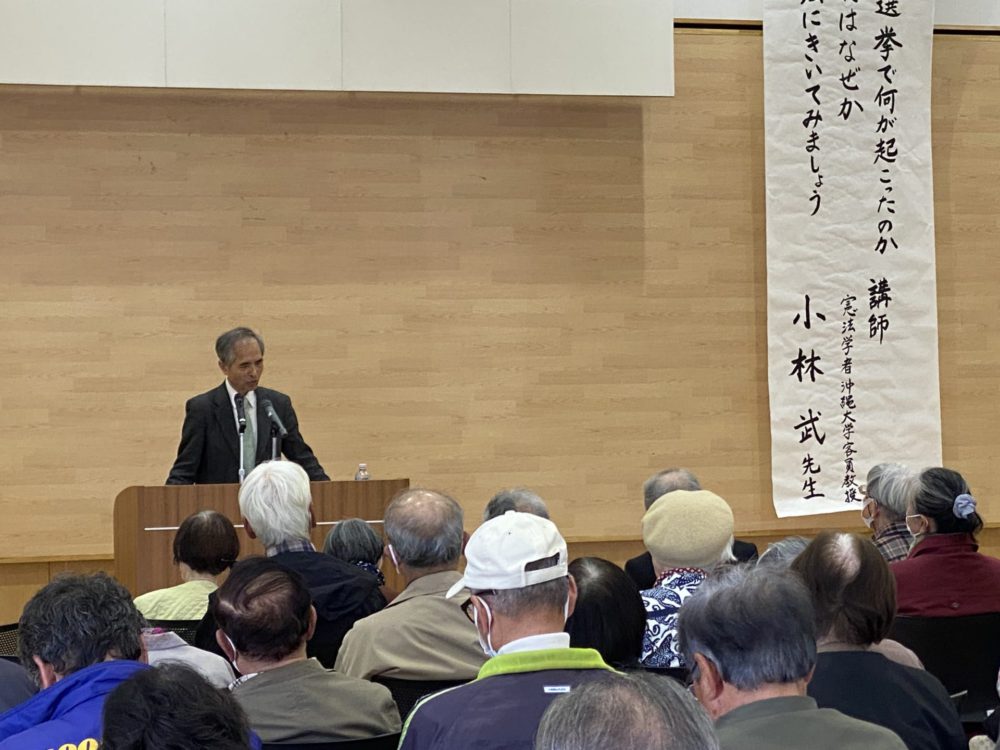 講師には、憲法学者で沖縄大学客員教授の小林武さんを迎えました。講演では、直近の総選挙結果の分析を軸に、首相の解散権の問題点、現在の政治地図の特徴、さらに沖縄における米軍基地問題など、現代日本の政治と憲法をめぐる論点が多角的に示されました。続く質疑応答では、参加者から寄せられた疑問に対し、小林さんが一つひとつ丁寧に答え、理解を深める場となりました。