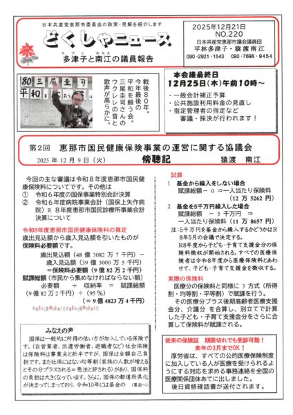 たとえば最近は、「賃金が上がらない」「物価高が続く」「安心して暮らせる場が少ない」といった声が届いています。