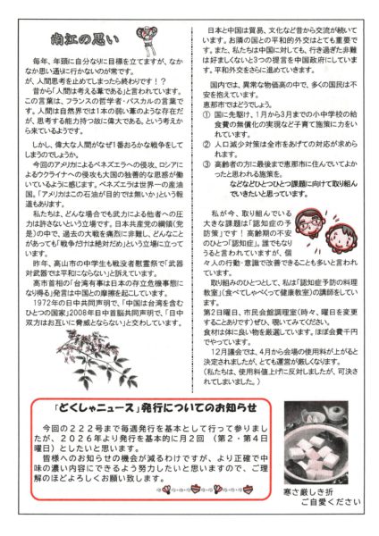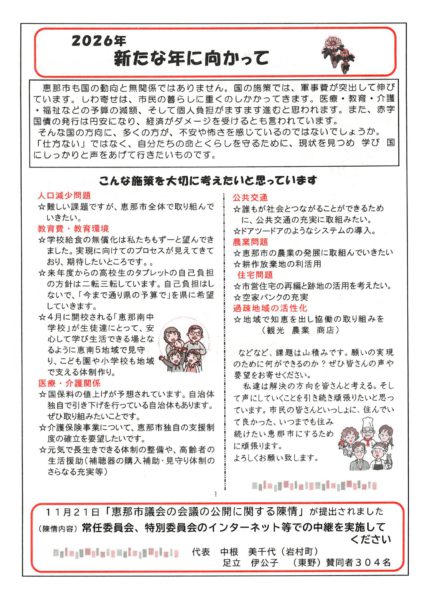 | 恵那市議会議員 | 猿渡南江 平林多津子 |