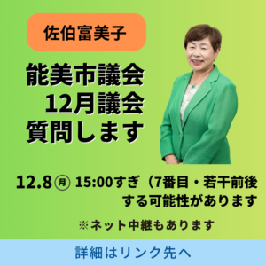 私が結婚して佐伯姓になったのは53歳の年でした。みなさんには「エーッ」と言われます。8年前、私が市議にでるきっかけも、夫・勝雄さんの「出たらいいよ」の一言でした。ところが、その勝雄さんが、2年後に脳梗塞になり、介護のため、議員は勇退。夫を看取るまで、自宅での介護は大変でしたが、支えて下さった訪問介護のみなさんには、本当に感謝でした。