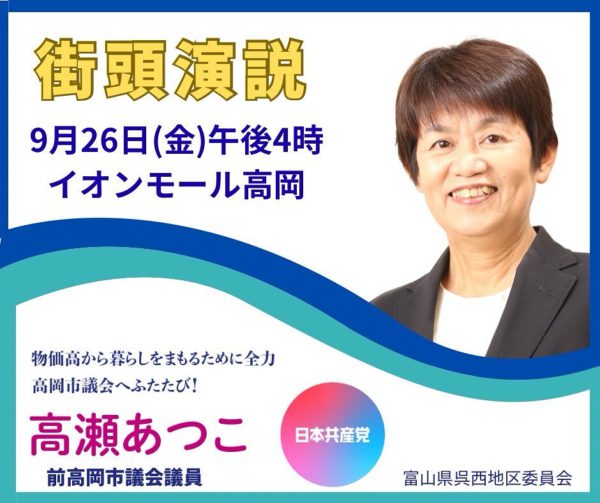 他にも、高岡市の水道料が富山市の2倍も高いと知って署名運動に取り組み、県や市と交渉して値下げを実現したり、学校の耐震化問題に取り組むなど、いつも市民の皆さんと手を取り合い、くらしと向き合って来ました。