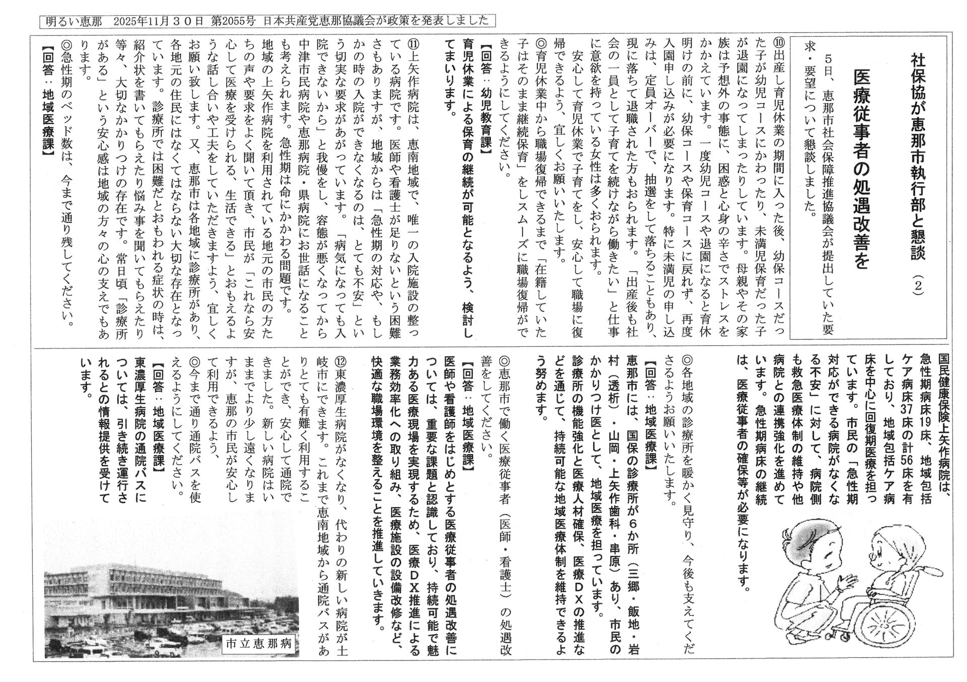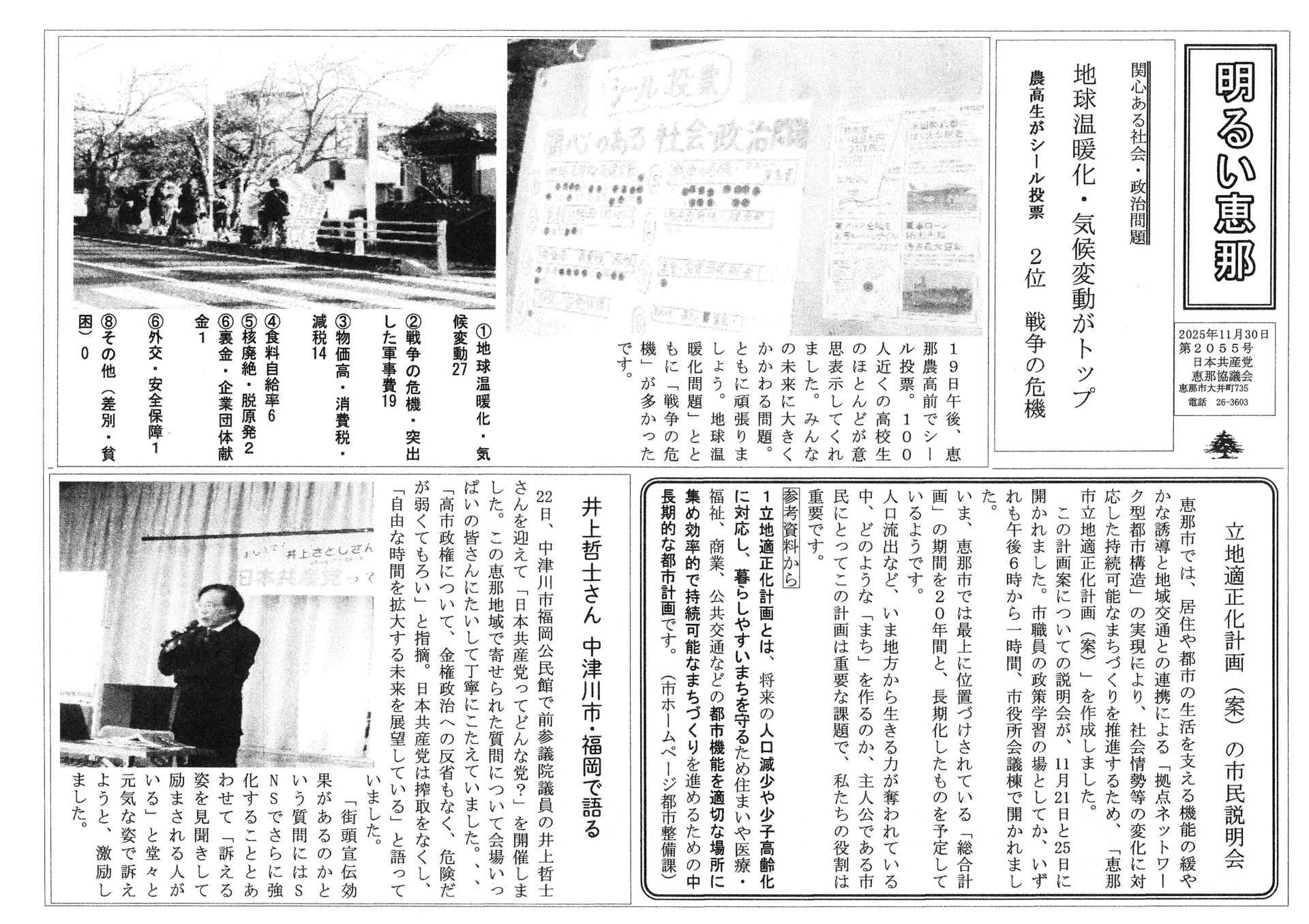 明るい恵那 11月30日号 2025年12月01日 09時30分33秒 by 日本共産党 恵那地区委員会 今週の「明るい恵那」です! 前の記事 【開催報告】戦争を語り継ぐつどいを開催しました 11月22日、『戦争を語り継ぐつどい』(主催:平林たづ子後援会)を無事に開催いたしました。 戦後80年の節目にあたり、参加者の皆さまとともに「平和を次の世... 次の記事 どくしゃニュース 多津子と南江の議員報告 11月30日号 今週の「どくしゃニュース多津子と南江の議員報告」です。 コメントを残す コメントをキャンセルメールアドレスが公開されることはありません。 ※ が付いている欄は必須項目です コメント 名前 * メール * サイト Δ